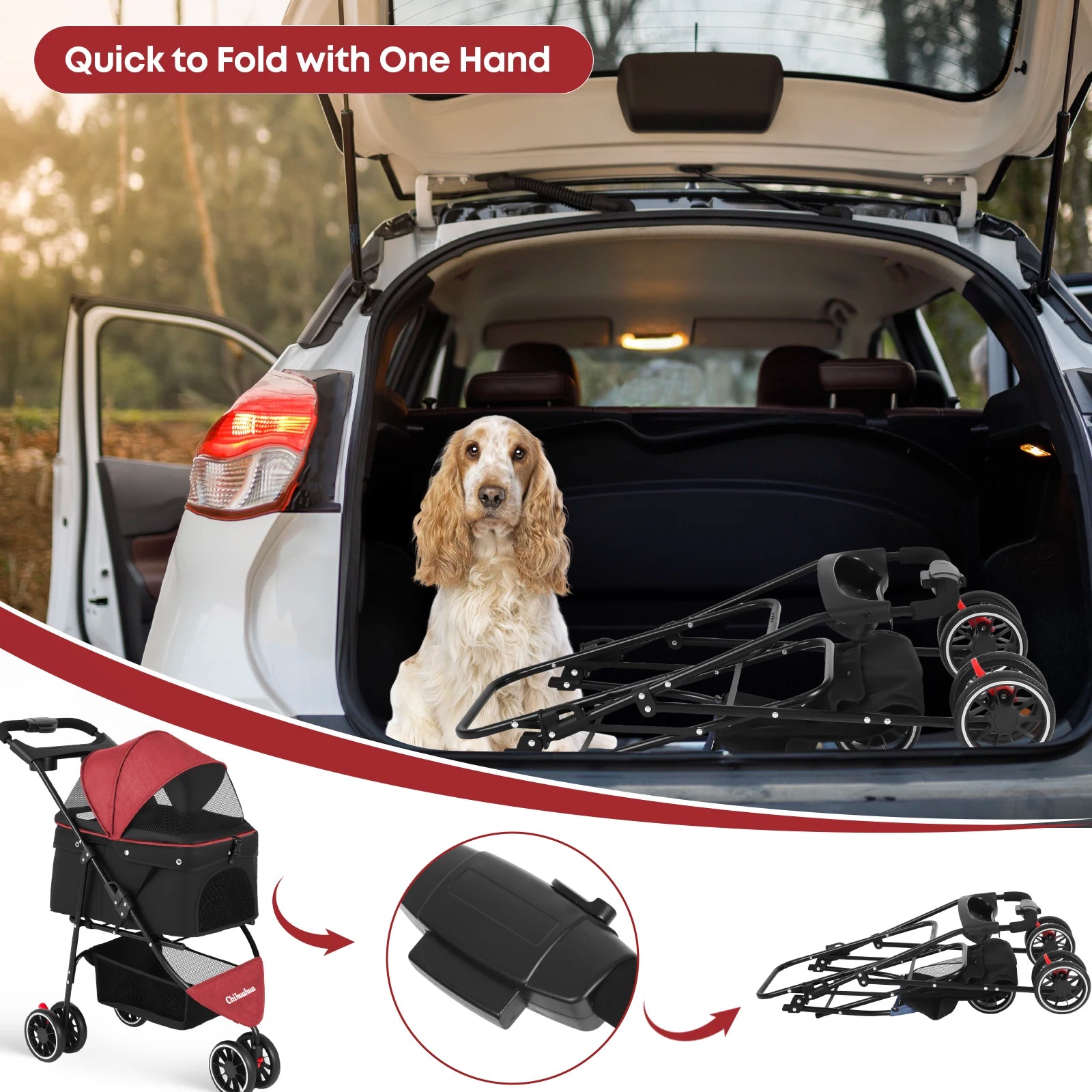 Medium pets, meet your ride! Ultra-portable with quick-fold magic—fits in your trunk, perfect for city strolls, parks, or coffee runs. Adventure just got lighter.