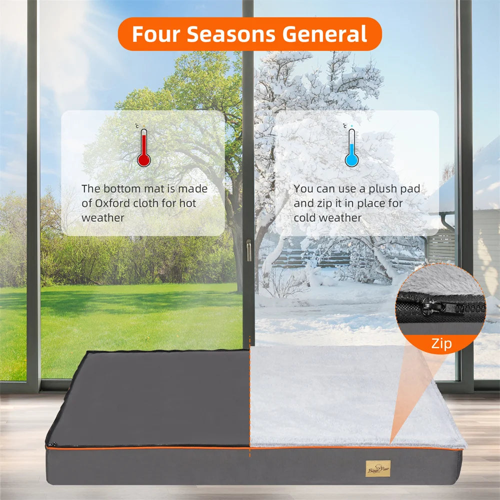 - Summer & Winter design — a luxury soft linter fabric cover paired with a scratch-proof Oxford fabric cover; quick-plug plush cover can be removed on hot days, and a warm plush mat can be added in cold weather.