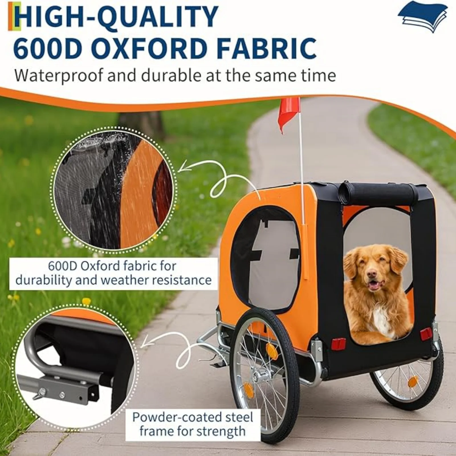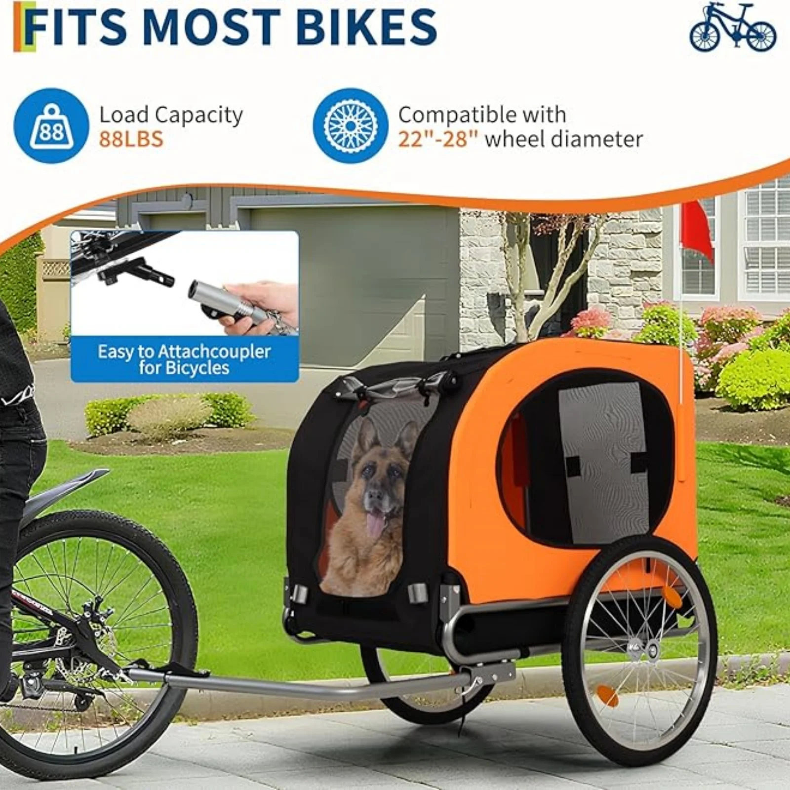Universal Bike Trailer for Medium & Large Dogs - 88Lbs Capacity Convertible Pet Carrier with 19" Air Tires for Bicycle & Jogger